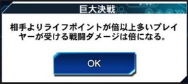 | 巨大決戦 | 相手よりライフポイントが倍以上多いプレイヤーが受ける戦闘ダメージは倍になる。 |